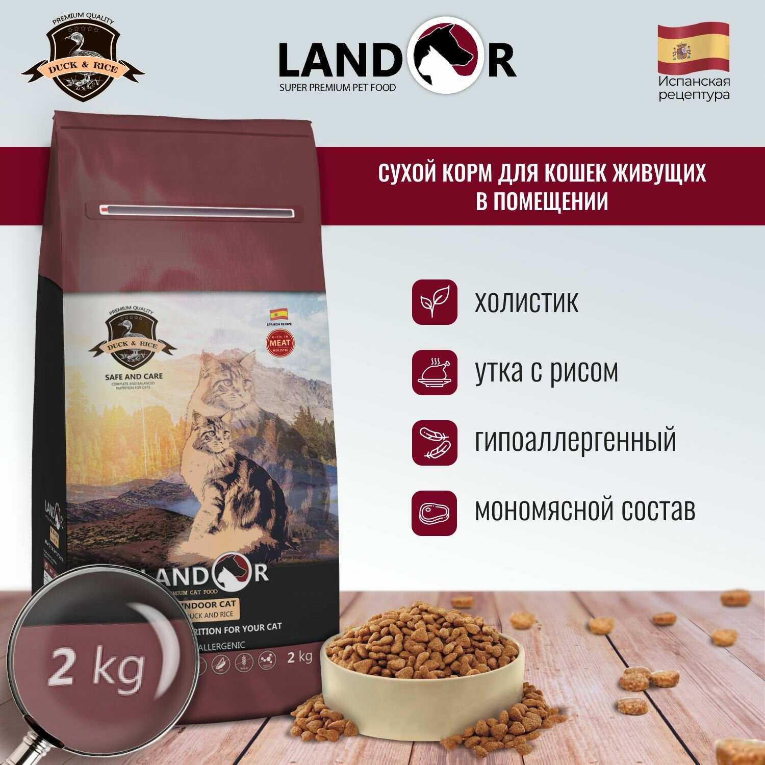 Сухой корм для кошек, живущих в помещении LANDOR, утка с рисом 2 кг