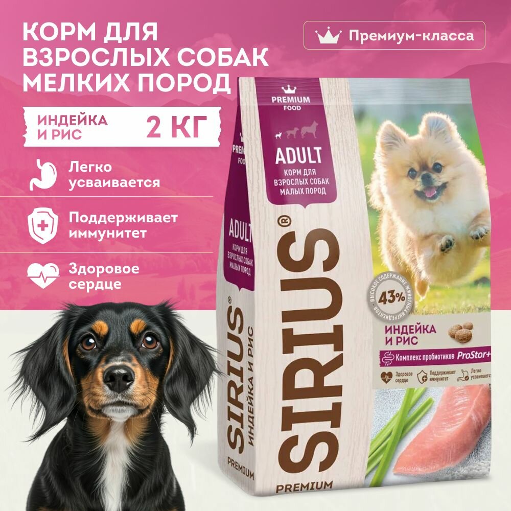 SIRIUS для взрослых собак маленьких пород с индейкой (2 кг)