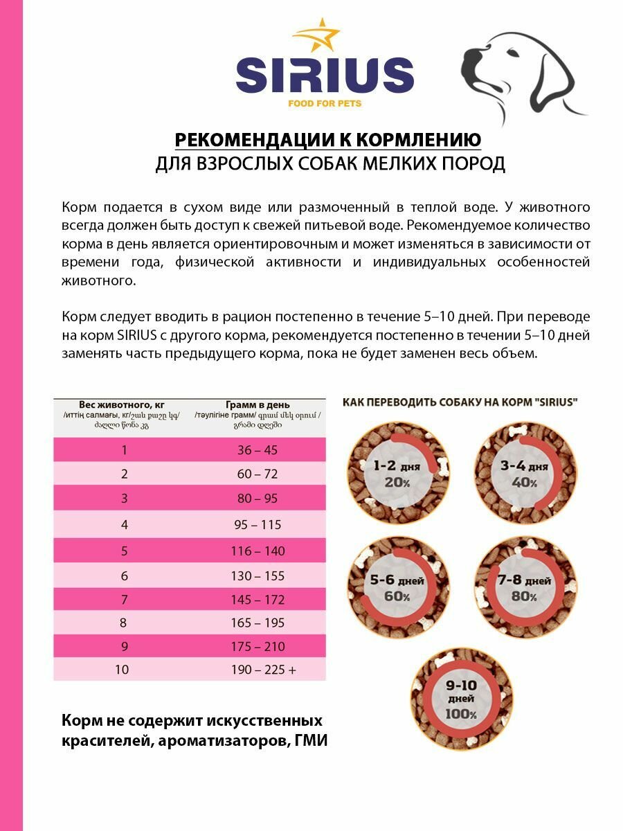 Sirius сухой корм для собак мелких пород с индейкой 2 кг.!