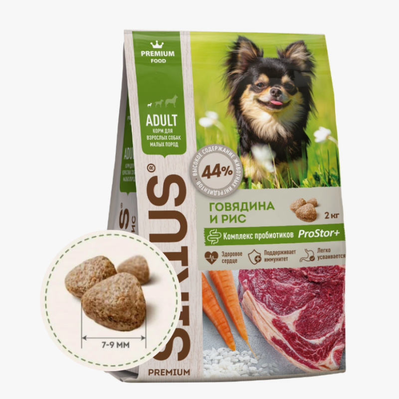 Sirius Премиальный сухой корм для взрослых собак малых пород с говядиной и рисом, 2 кг