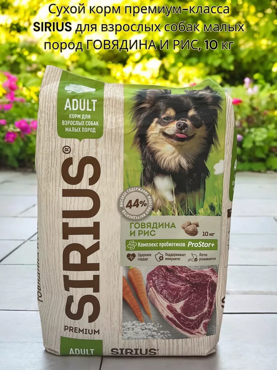 Sirius Сухой корм для собак малых пород, Говядина и Рис 10кг