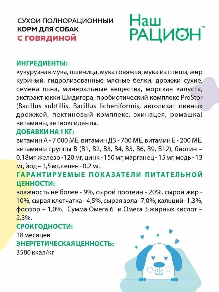 Наш Рацион 45724 сух.для собак с Говядиной 15кг, 91874 (1 шт)