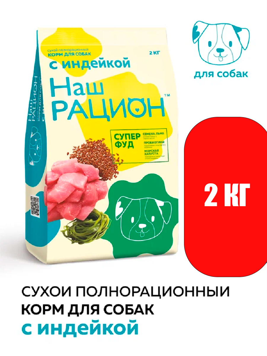 Купить Сухой полнорационный корм Наш Рацион для взрослых собак, с индейкой, 2 кг