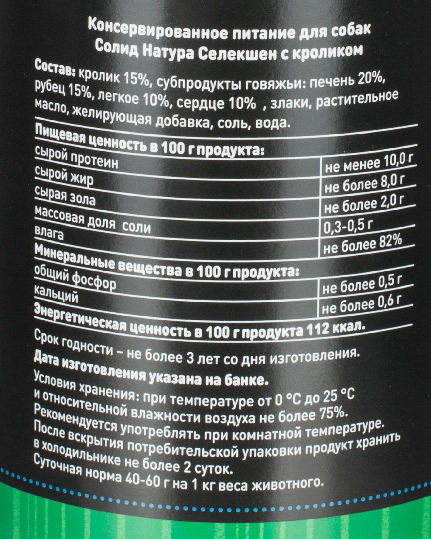Корм влажный Solid Natura Selection Кролик для собак, 970 г