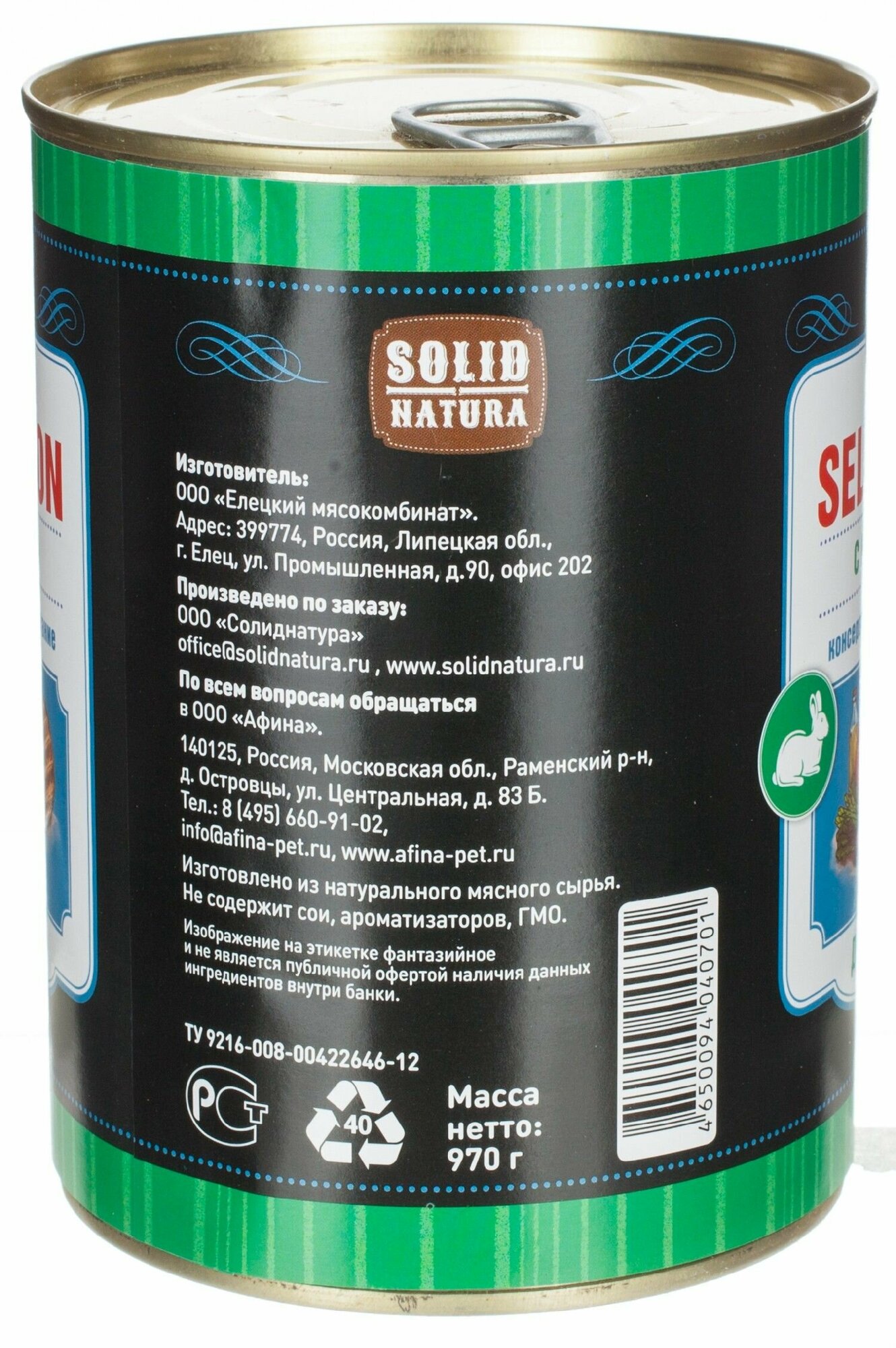 Влажный корм для собак, Solid Natura Selection, кролик, упаковка 6 шт х 970 г