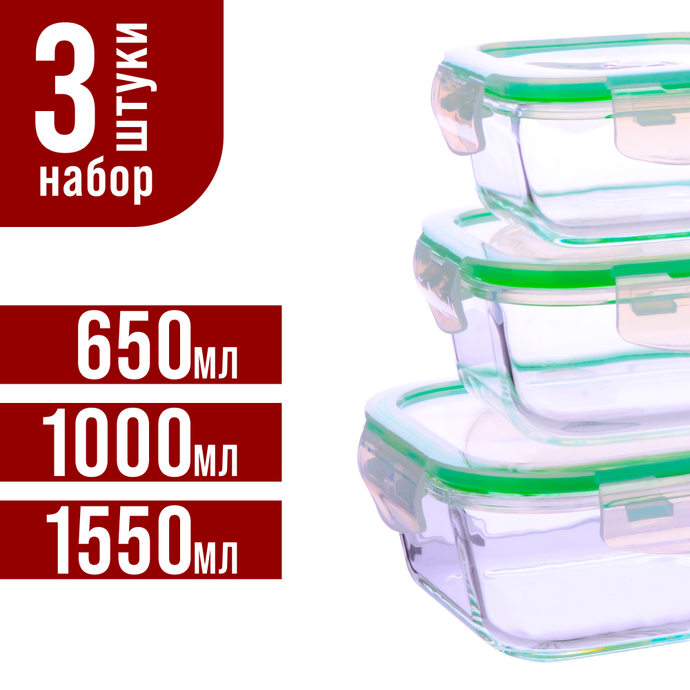 Набор контейнеров для продуктов LORAINE 3 предмета, 605мл/ 1л / 1,55л 60037