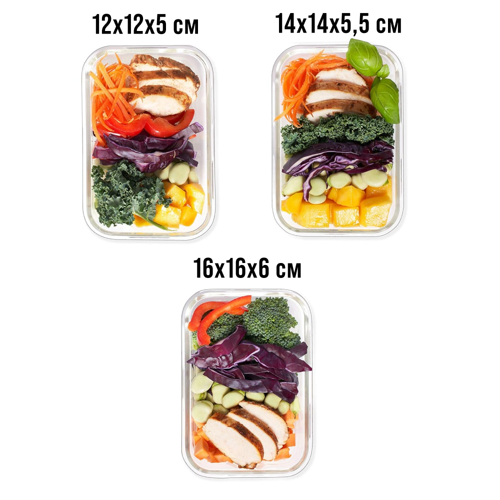 Купить Набор контейнеров для еды с крышкой LORAINE, стеклянный, прозрачный 26266
