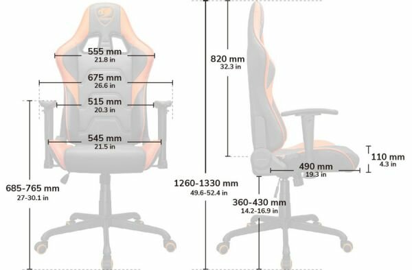 Кресло геймерское COUGAR Armor One black/orange (экокожа, регулируемый угол наклона, механизм качания)