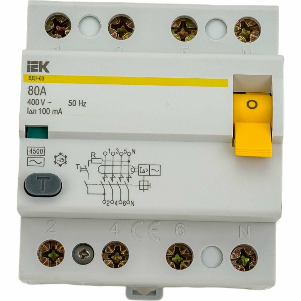 УЗО IEK ВД1-63 3P N 80 A 100 мА 4.5 кА AC MDV10-4-080-100
