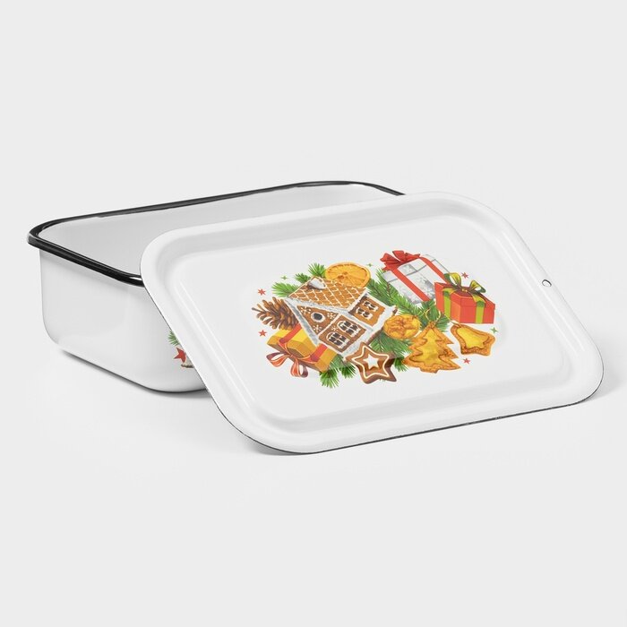 Купить Контейнер металлический с крышкой, 1,5 л, деколь микс, цвет белый