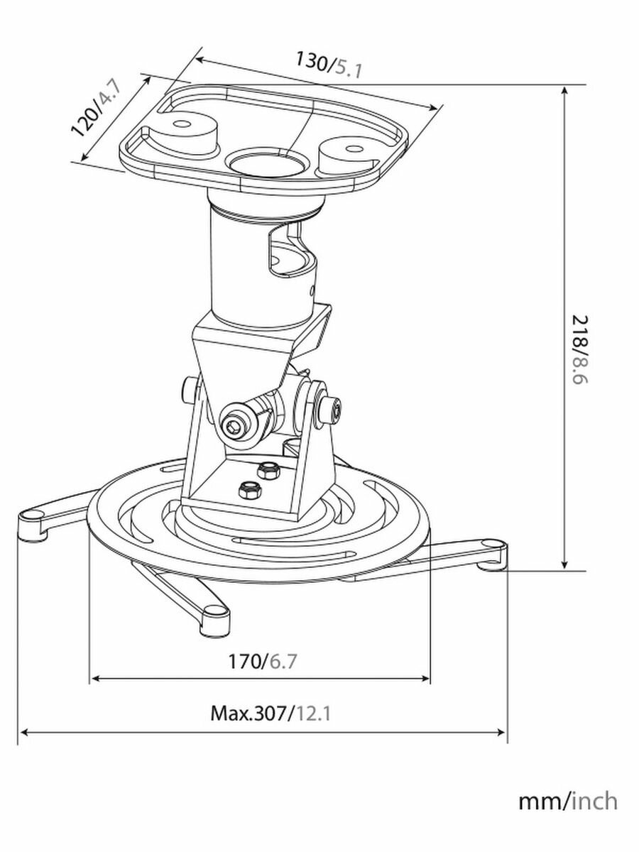 Крепление для проектора Cactus CS-VM-PR01-AL серебристый, до 10кг, 218мм, настенный и потолочный, поворот и наклон