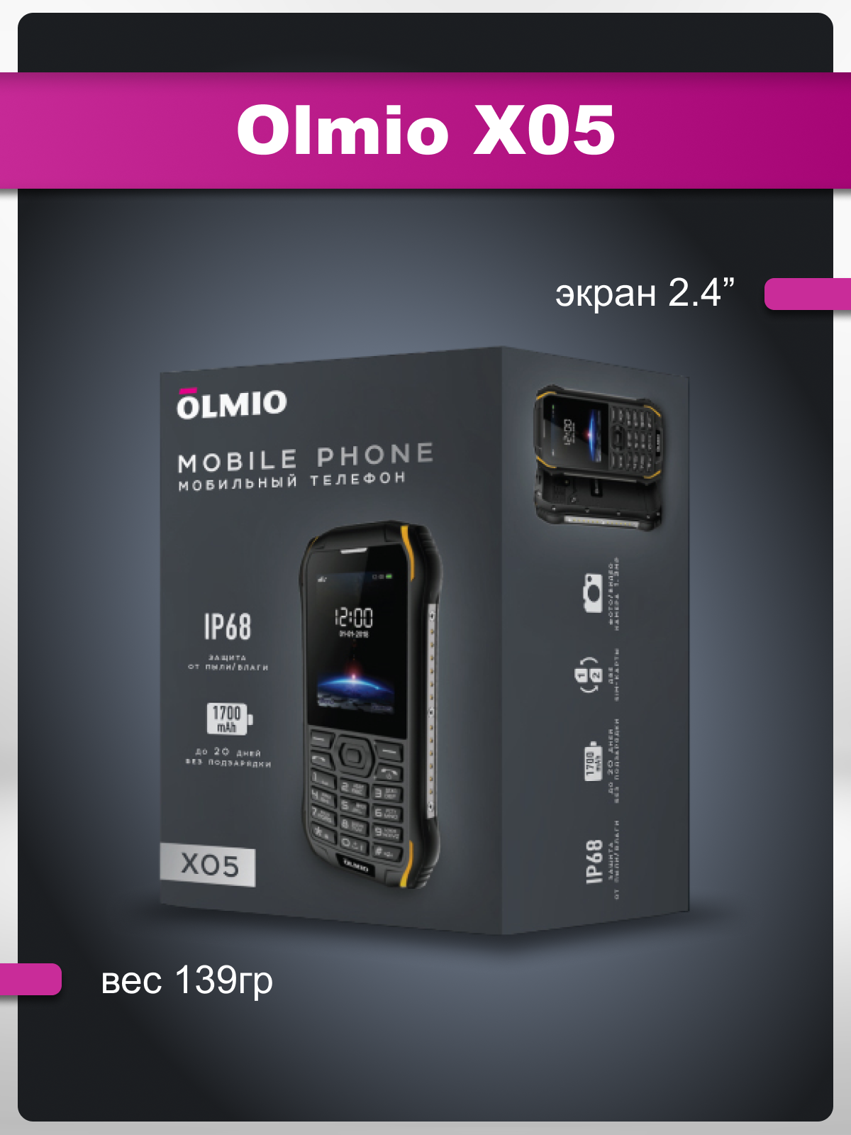 Защищенный противоударный, водонепроницаемый мобильный телефон Olmio X05