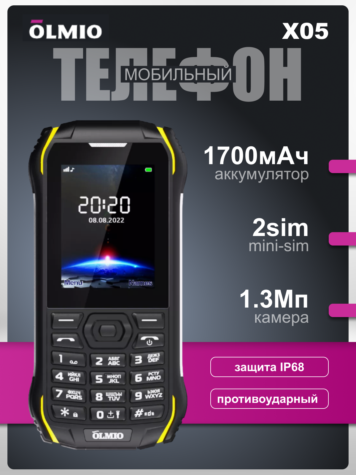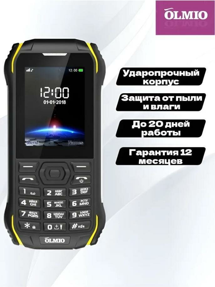Мобильный телефон Olmio X05, IP68, черный-желтый интересное: