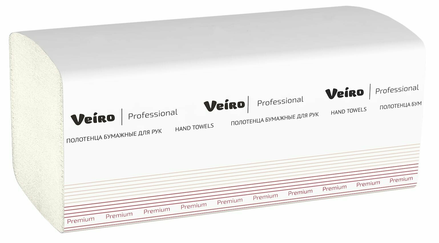 VEIRO PROF полотенца для рук Premium V-сложение, 2 слоя, 200 листов, белый. 20 шт. в коробке.