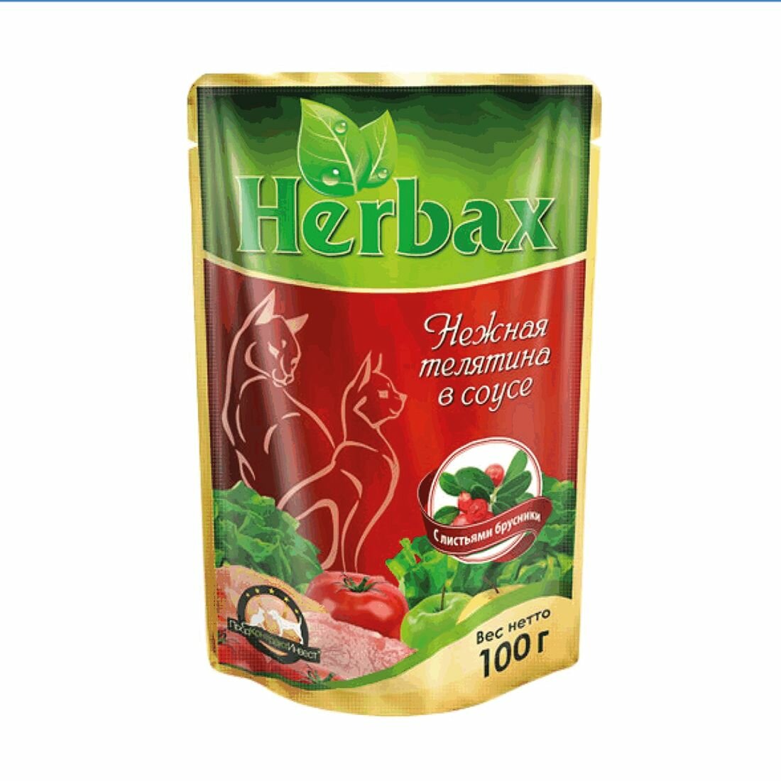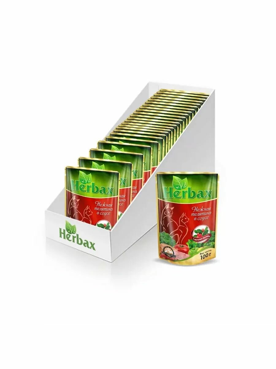 Herbax Паучи для кошек нежная телятина в соусе с листьями брусники 100г 24шт