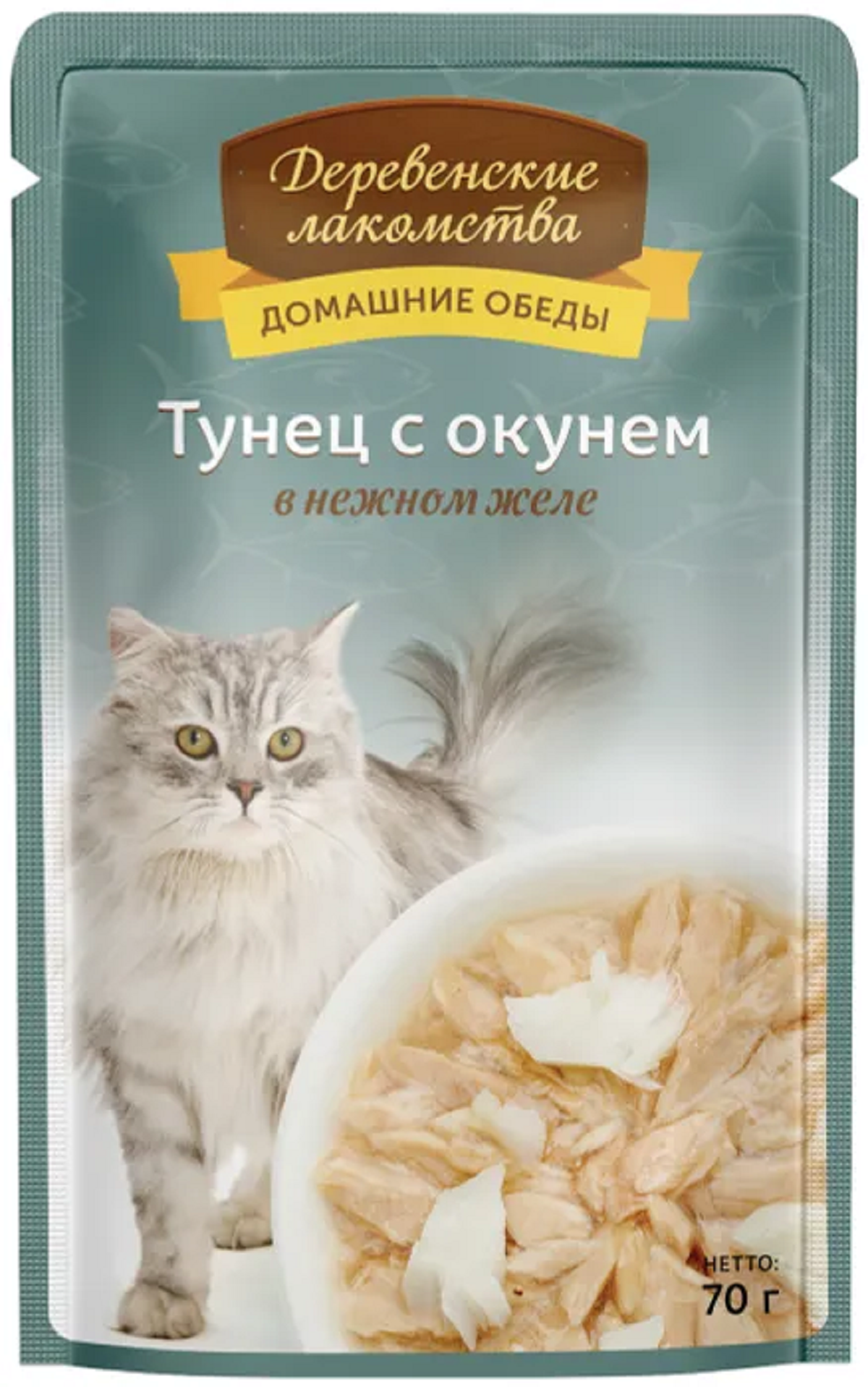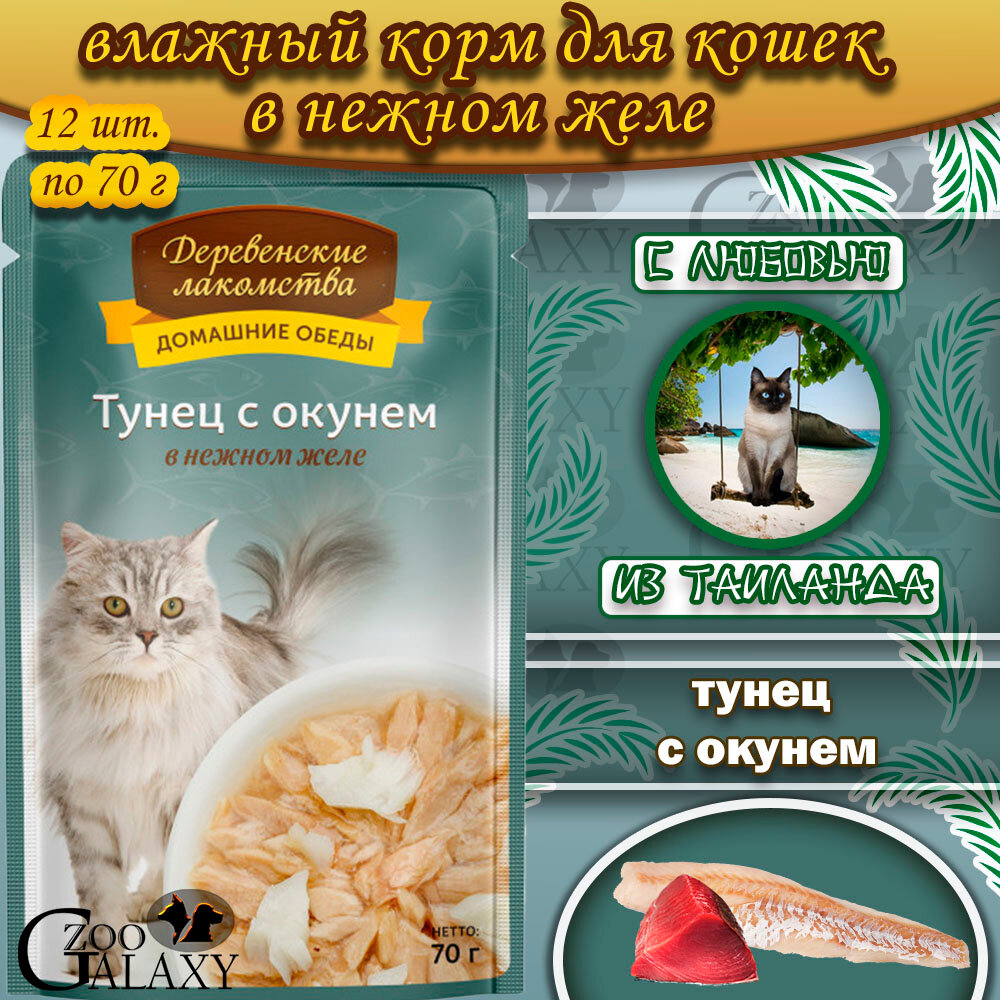 Влажный корм для кошек "Деревенские лакомства" тунец с окунем в нежном желе 70гр* 12 шт