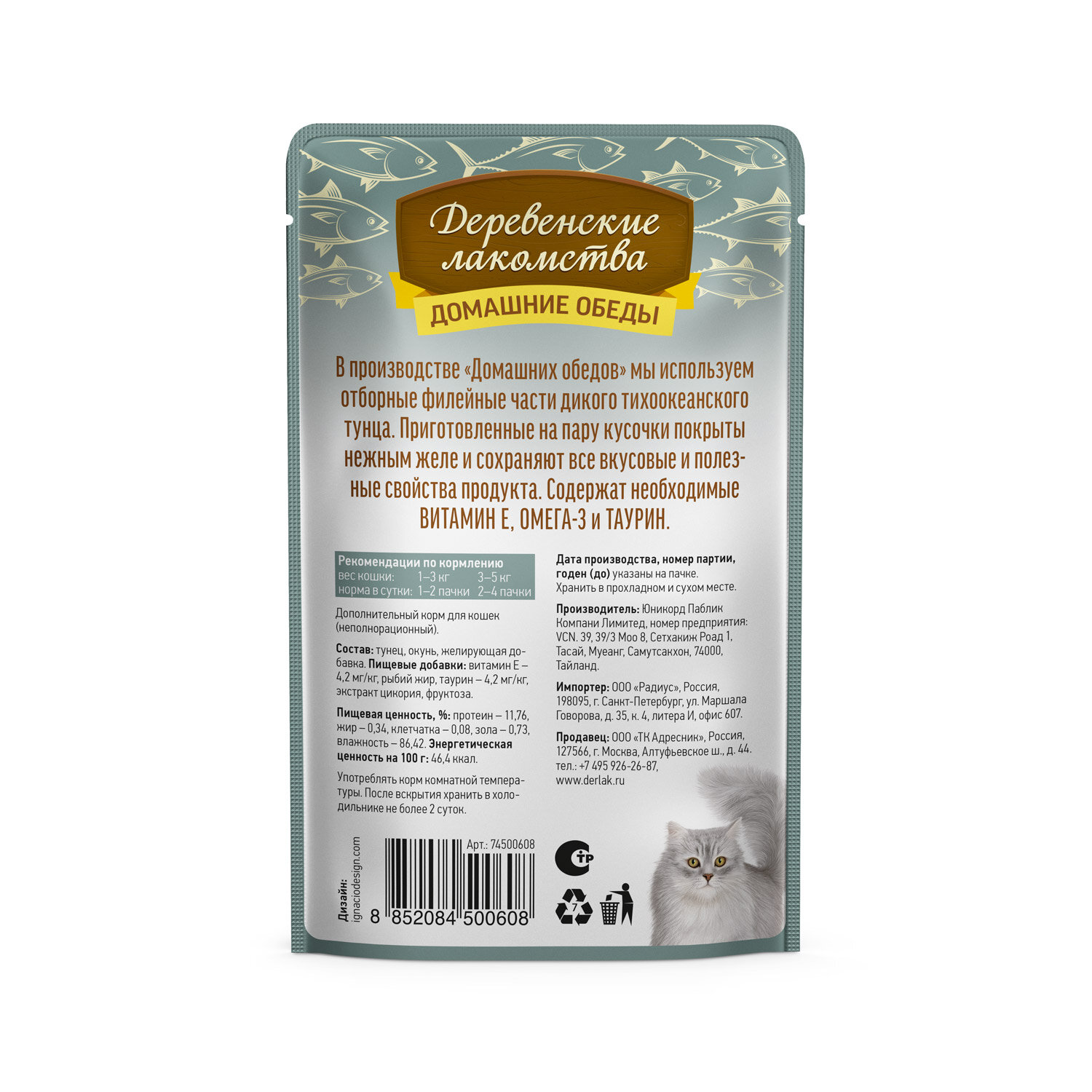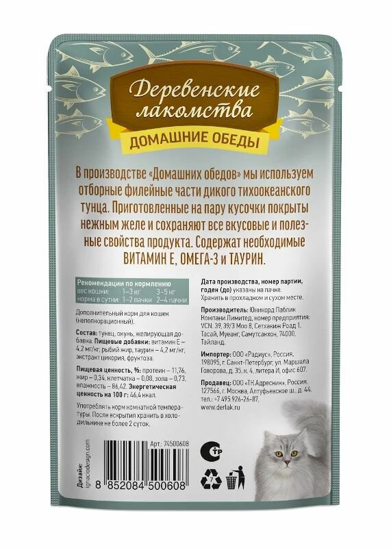 СохранитьДеревенские лакомства пауч для кошек (кусочки в нежном желе) Тунец и окунь, 70 г. упаковка 12 шт интересное: