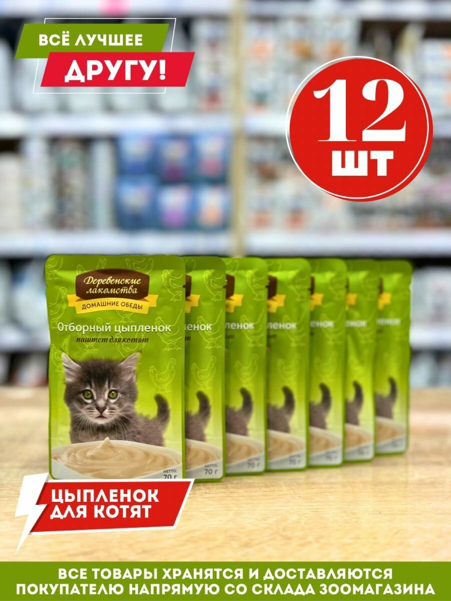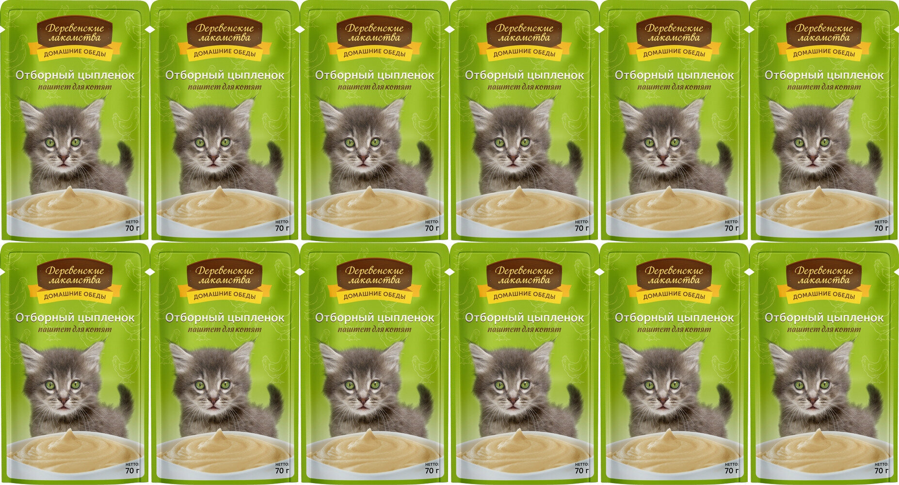 Деревенские лакомства домашние обеды для котят паштет с отборным цыпленком (70 гр х 12 шт)