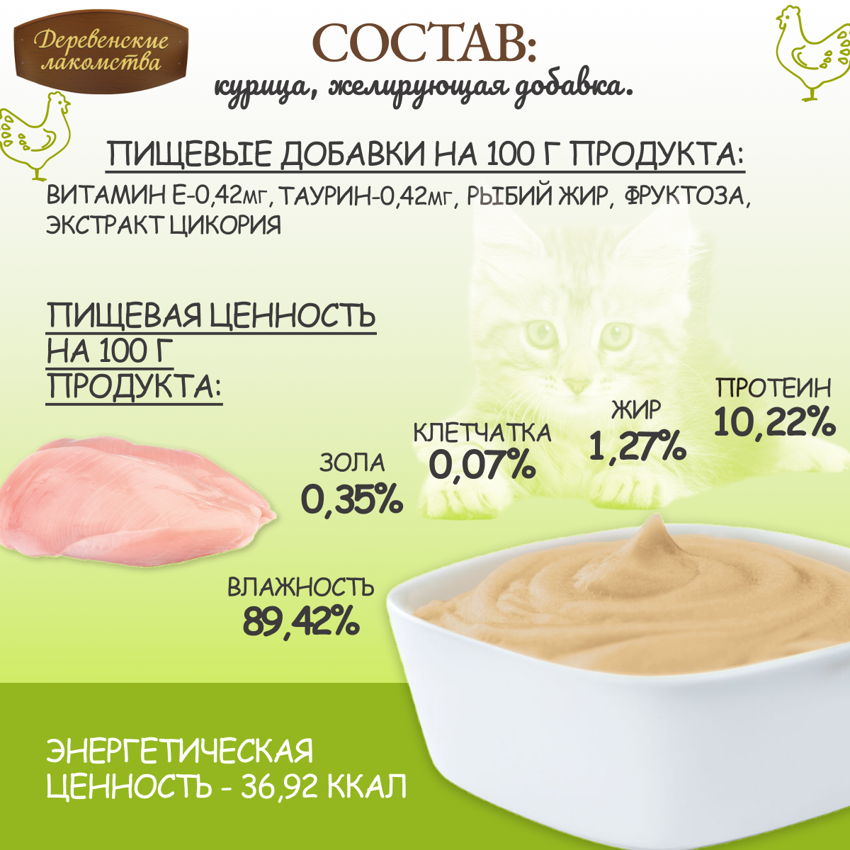 Деревенские лакомства Консервы для кошек «Отборный цыпленок паштет для котят» , 0,070 кг