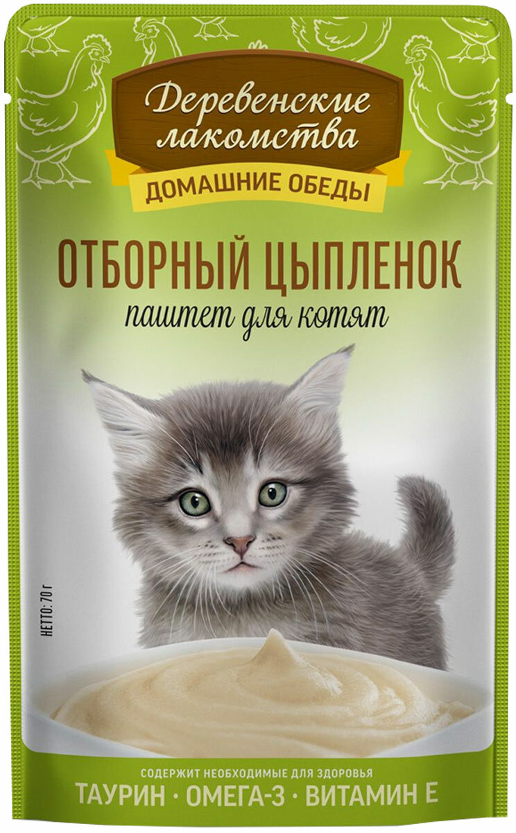 Деревенские лакомства пауч паштет для котят Отборный цыпленок 70г