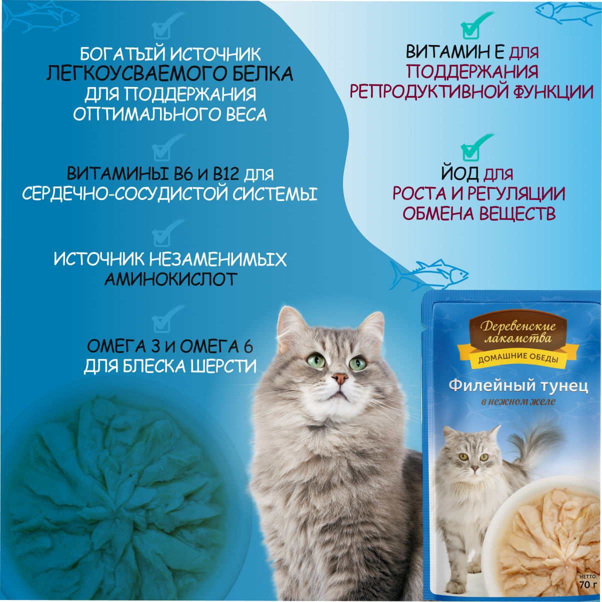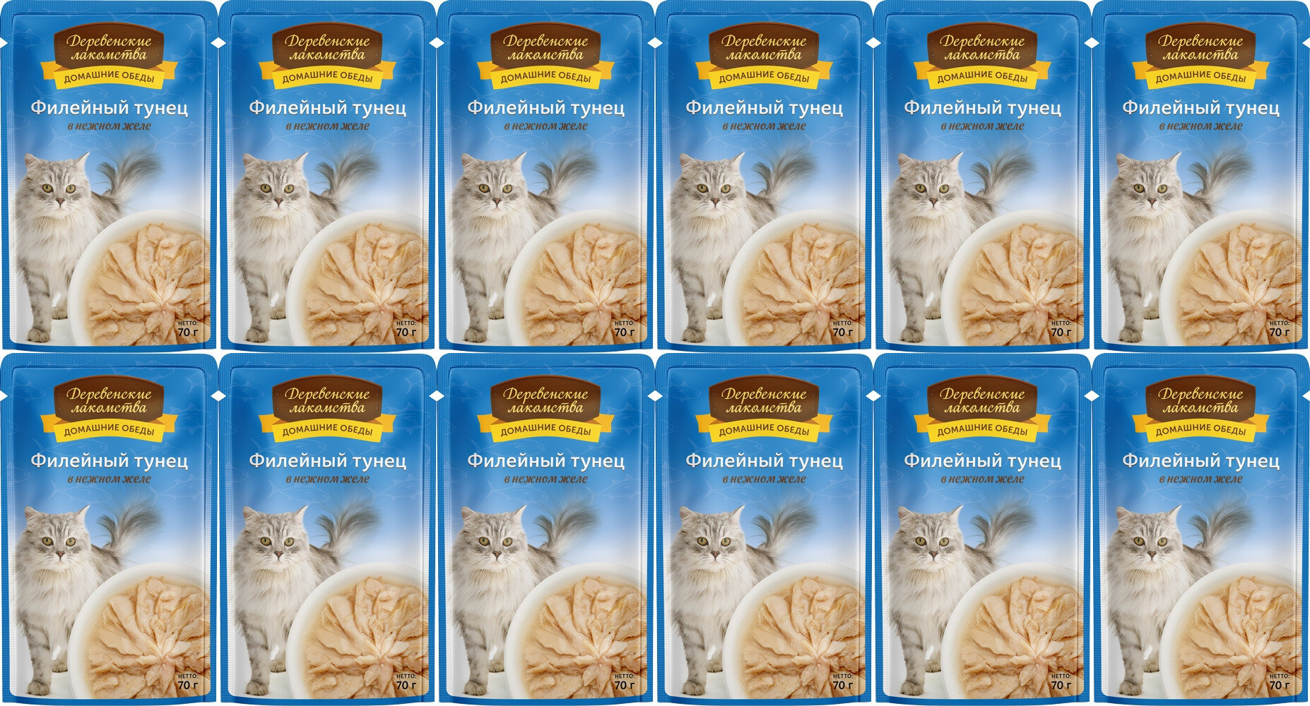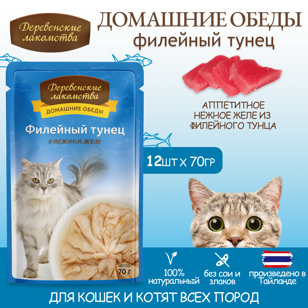 Деревенские лакомства Консервы для кошек Филейный тунец в нежном желе пауч 70гр х 12 штук в упаковке
