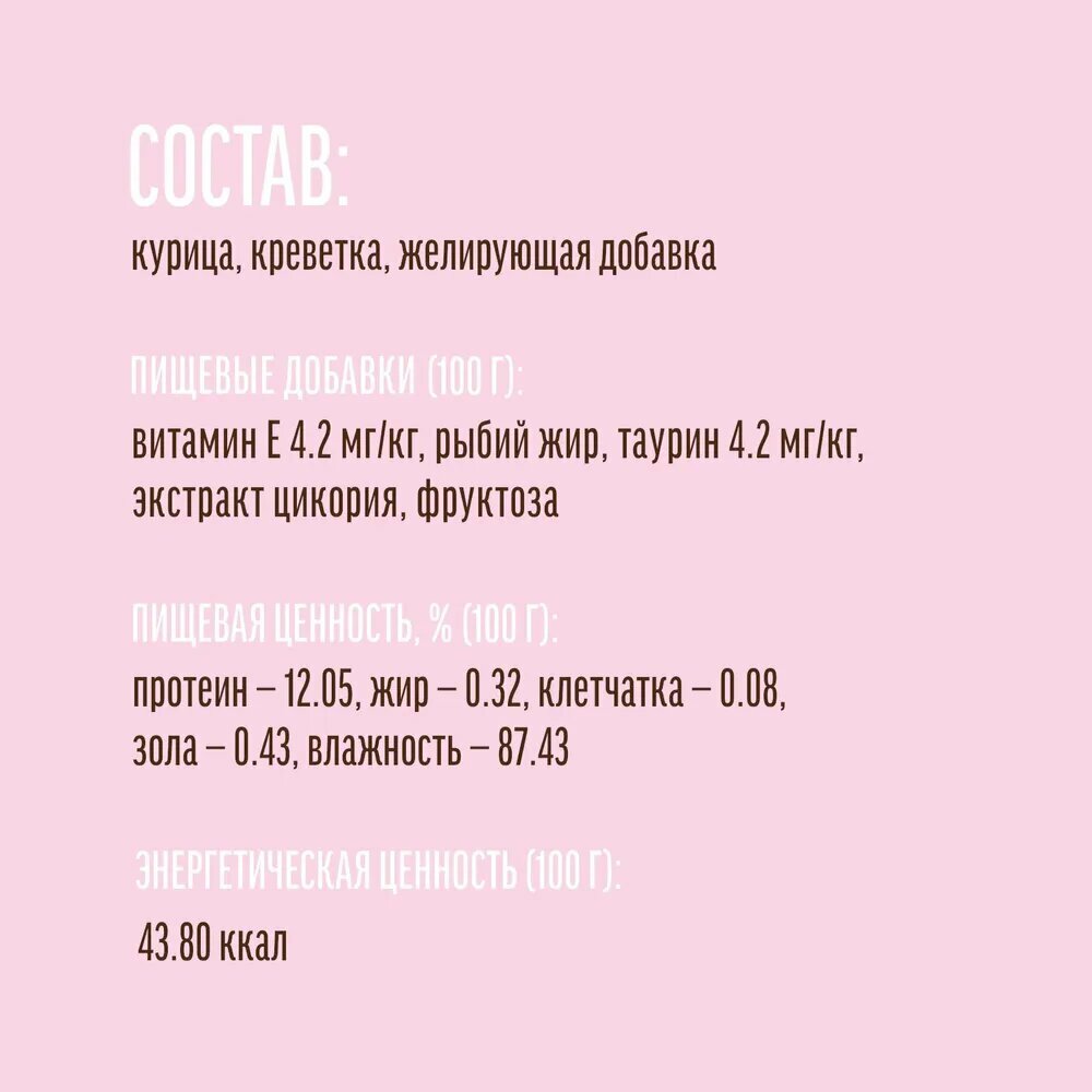 СохранитьДеревенские лакомства влажный корм пауч д/кошек Курица с креветкой в нежном желе 70г.×12шт. интересное: