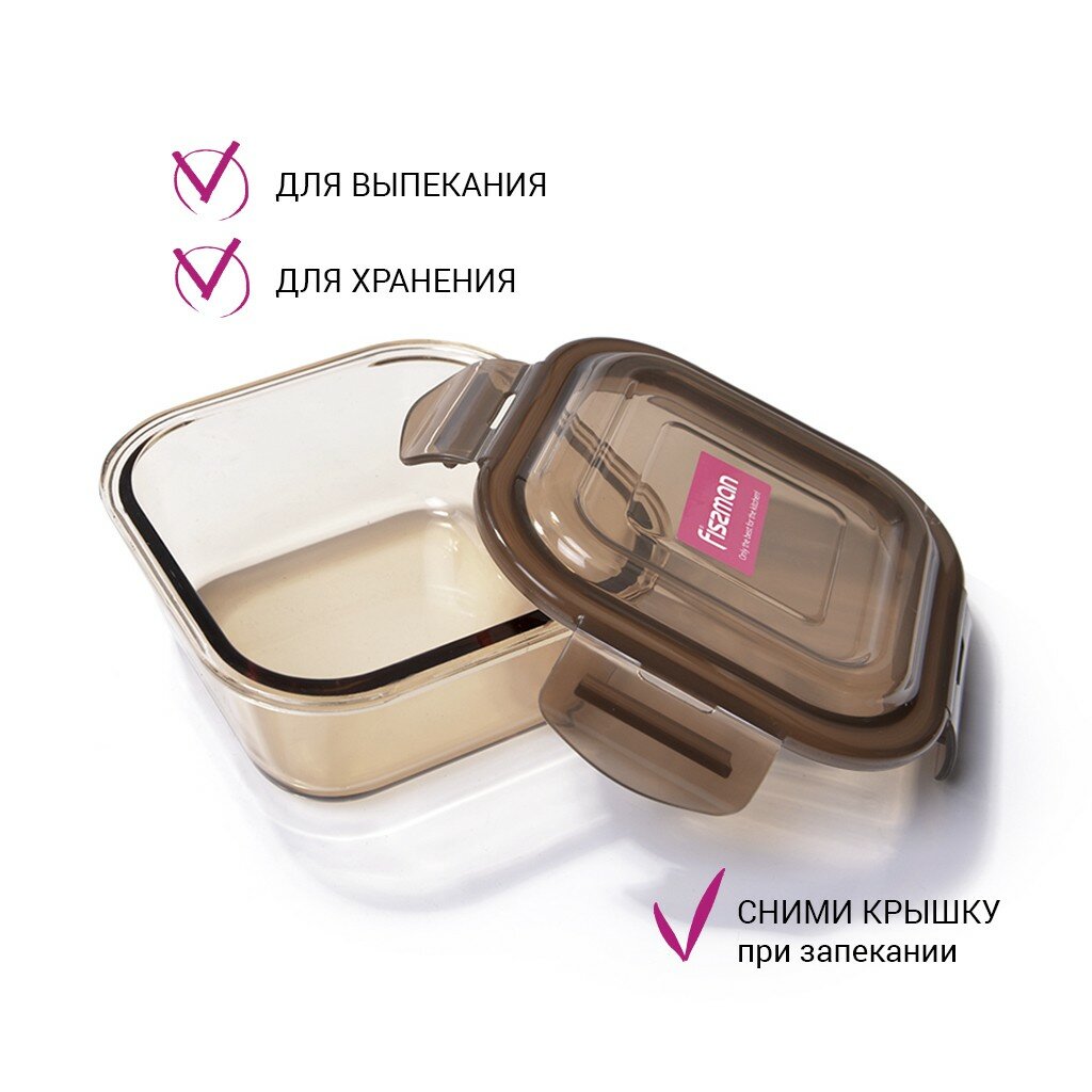Контейнер Fissman с пластиковой крышкой 13x13x5 см / 520 мл (стекло) (6522)