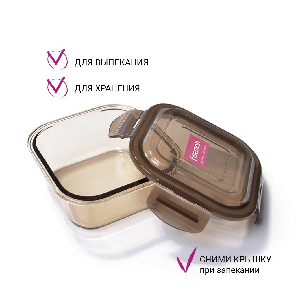 Контейнер Fissman с пластиковой крышкой 15x15x6 см / 800 мл (стекло) (6523)
