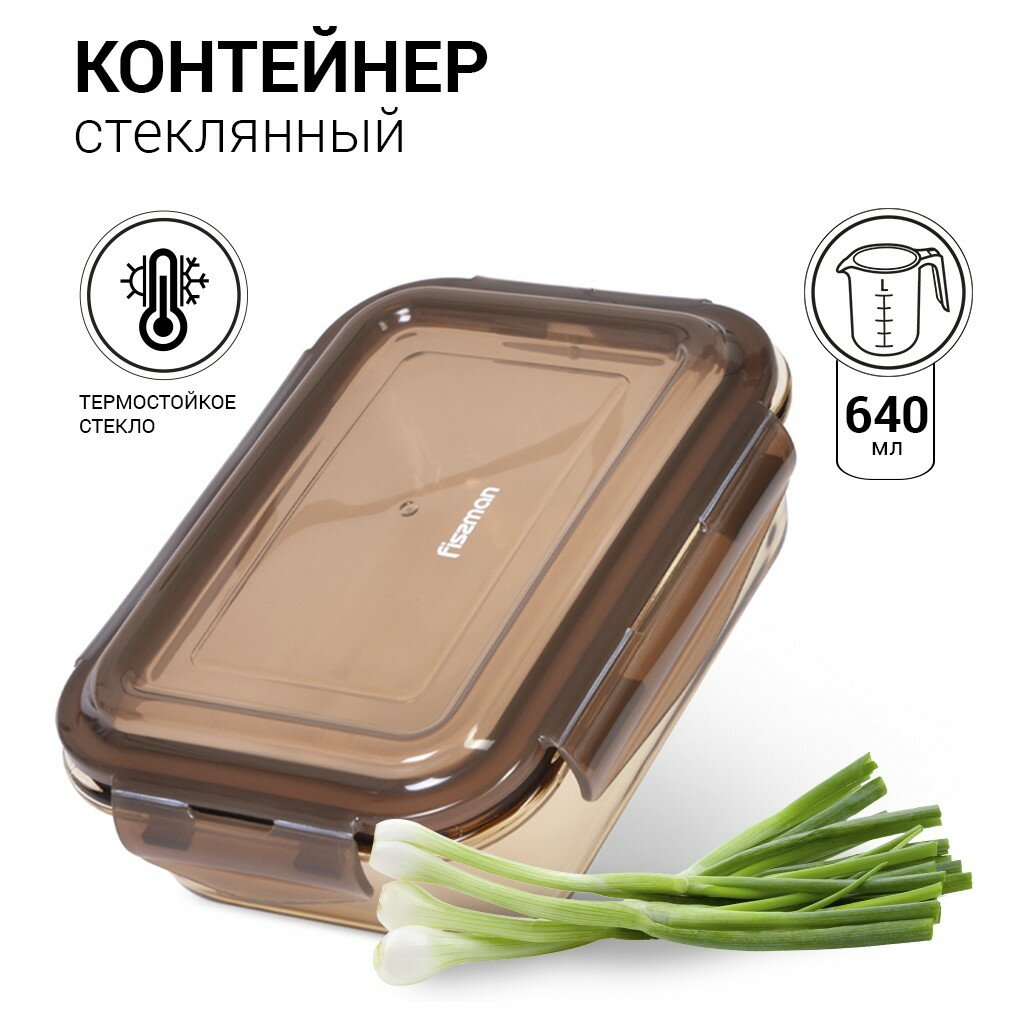 Контейнер Fissman с пластиковой крышкой 17x12x5 см / 640 мл (стекло) (6524)