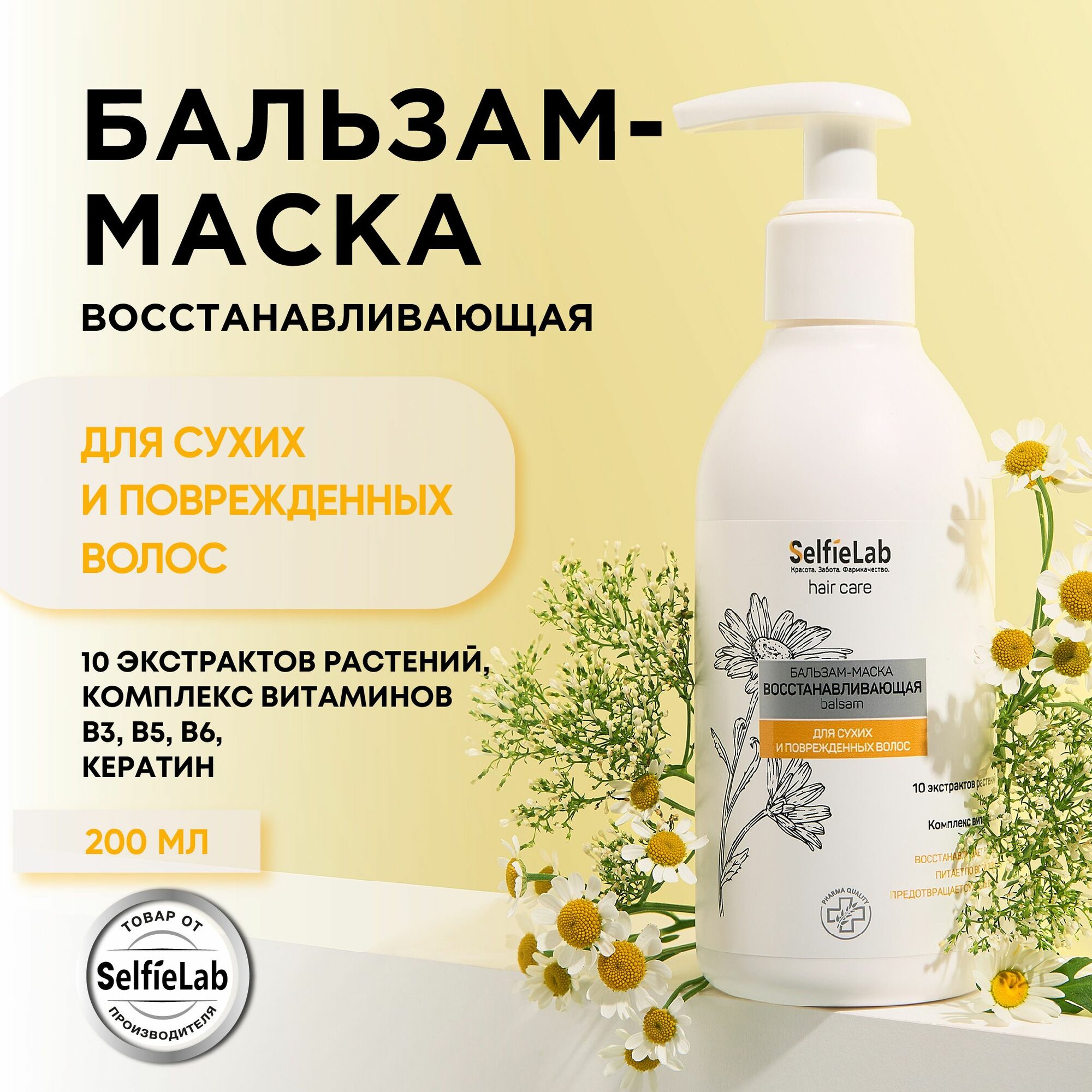 SelfieLab бальзам-маска Восстанавливающая с кератином натуральными экстрактами растений и комплексом витаминов 200мл