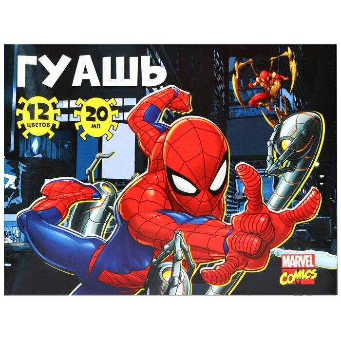 Купить Гуашь 12 цветов по 20 мл, Человек-паук