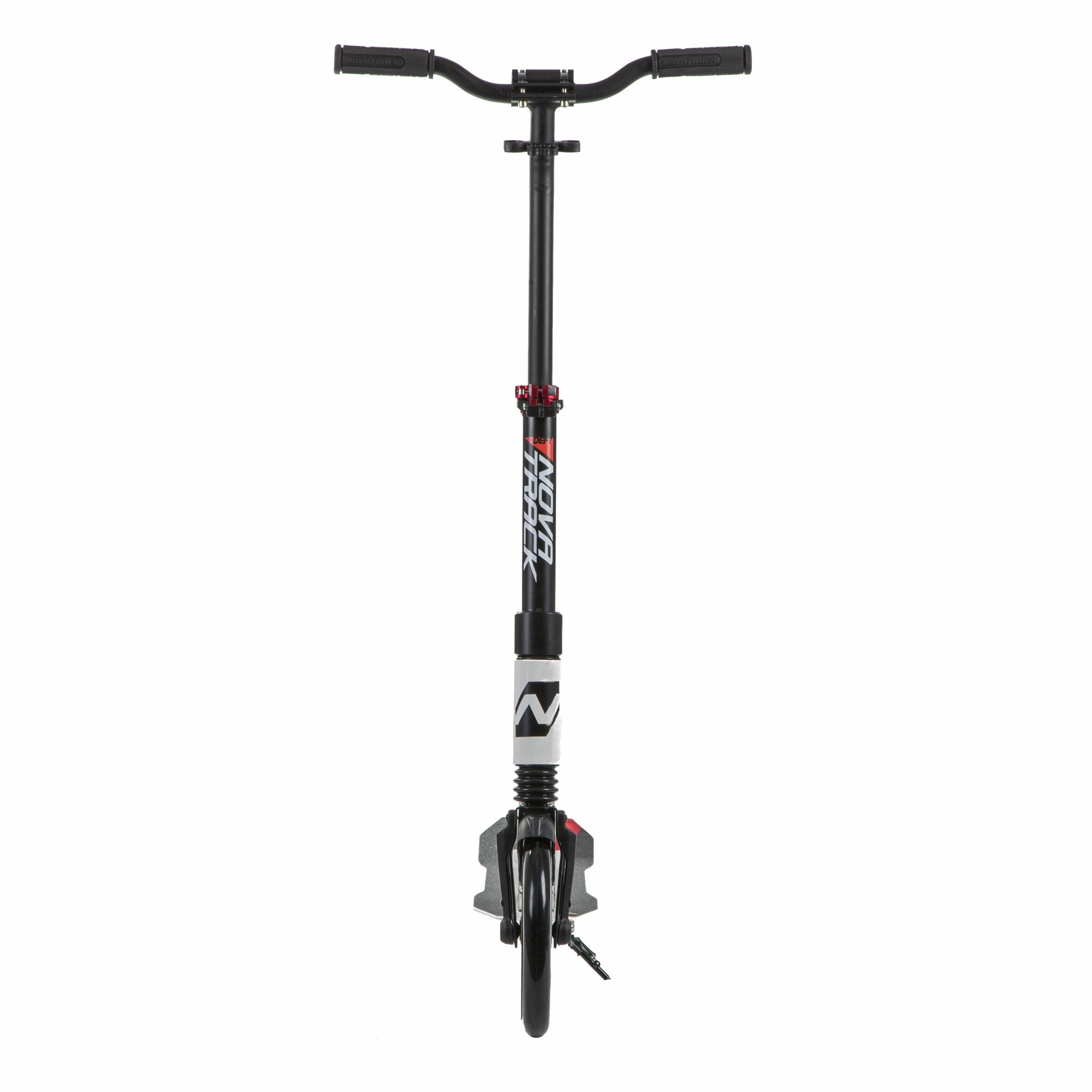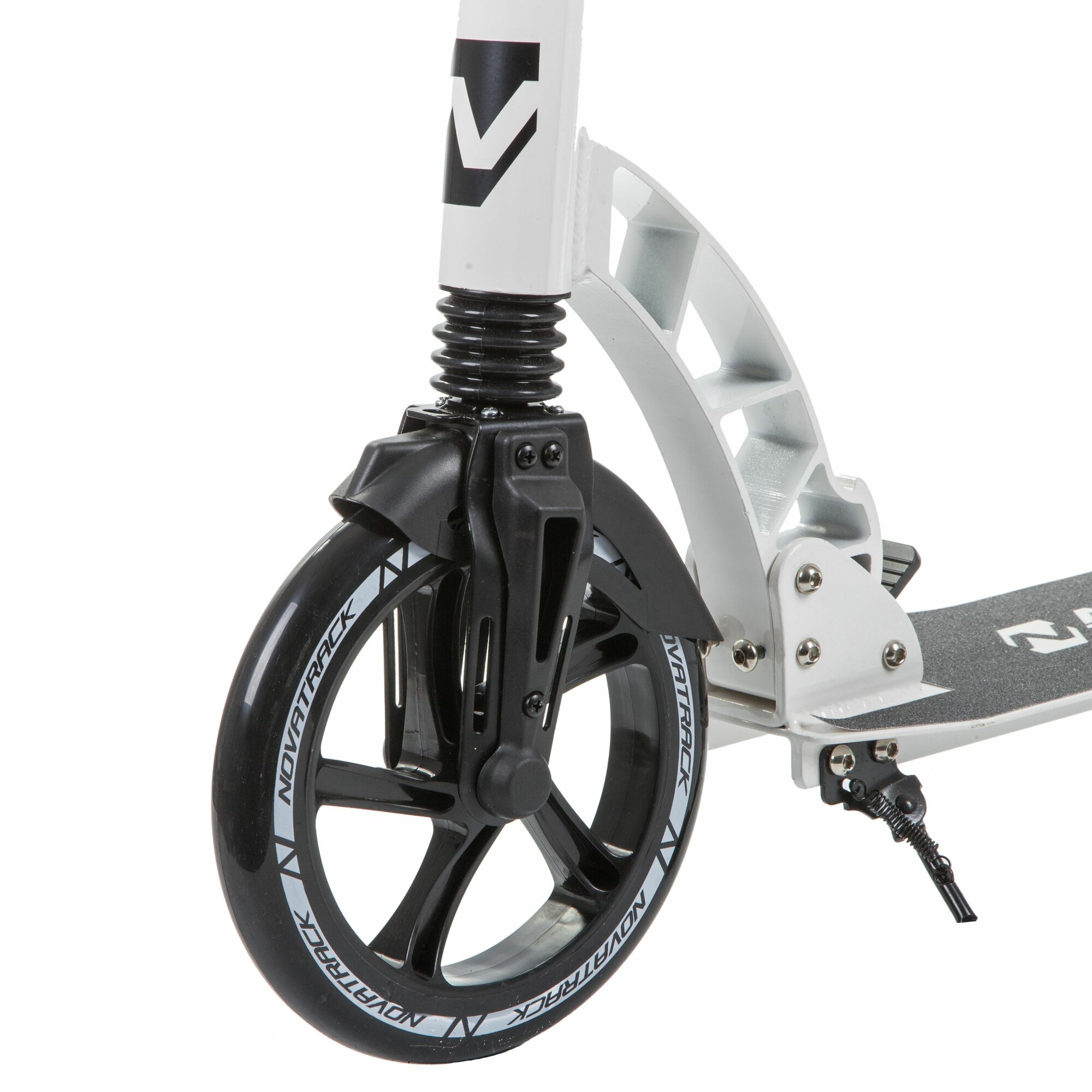 Купить Самокат NOVATRACK DEFT алюм., амортизатор, колеса 230*200 мм PU, эргономичный Y-руль с фиксатором складных рукоятей, черно-белый
