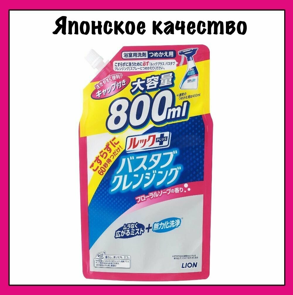 LION Чистящее средство для ванной комнаты "Look Plus" быстрого действия (лёгкий аромат + ионы серебра) 800 мл, мягкая упаковка с крышкой