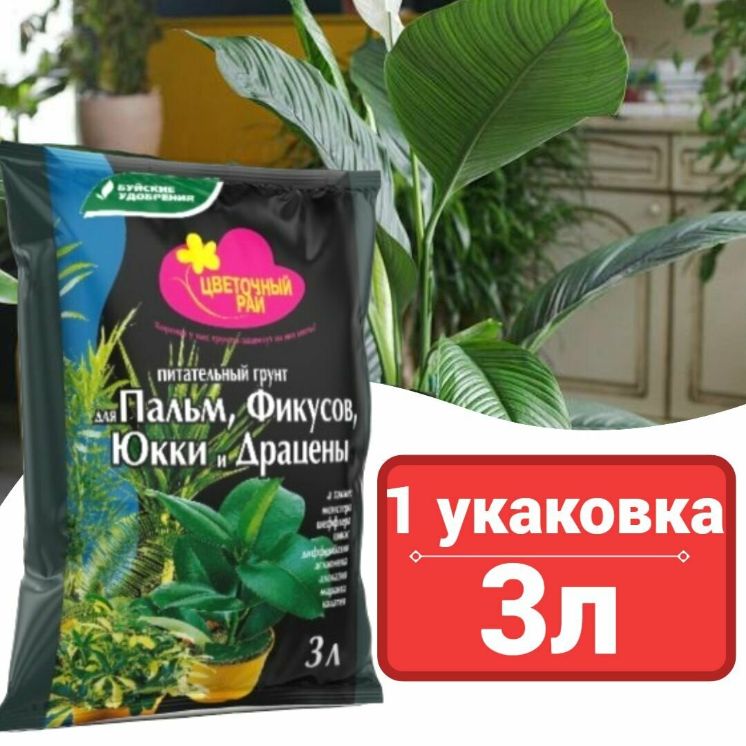 Купить Питательный грунт для Пальм,Фикусов,Юкки,Драцены 3л. Цветочный рай /Буйские удобрения/