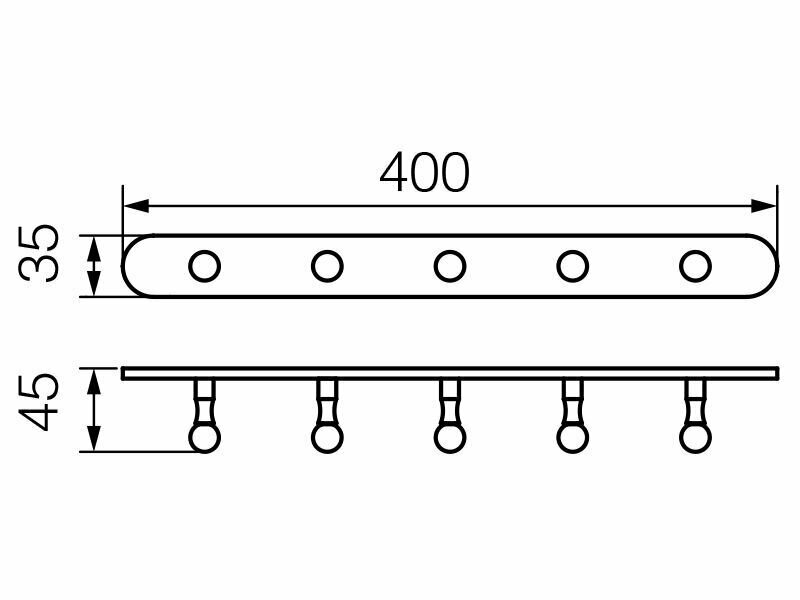 Планка с 5-ю крючками L40 см., хром GIALETTA