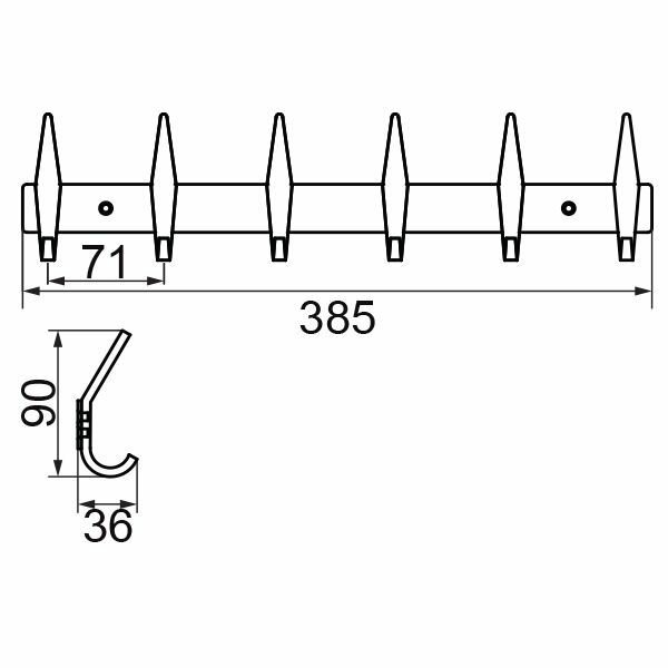 СохранитьПланка с 6-ю крючками для ванной 38,5xH3 см. хром интересное: