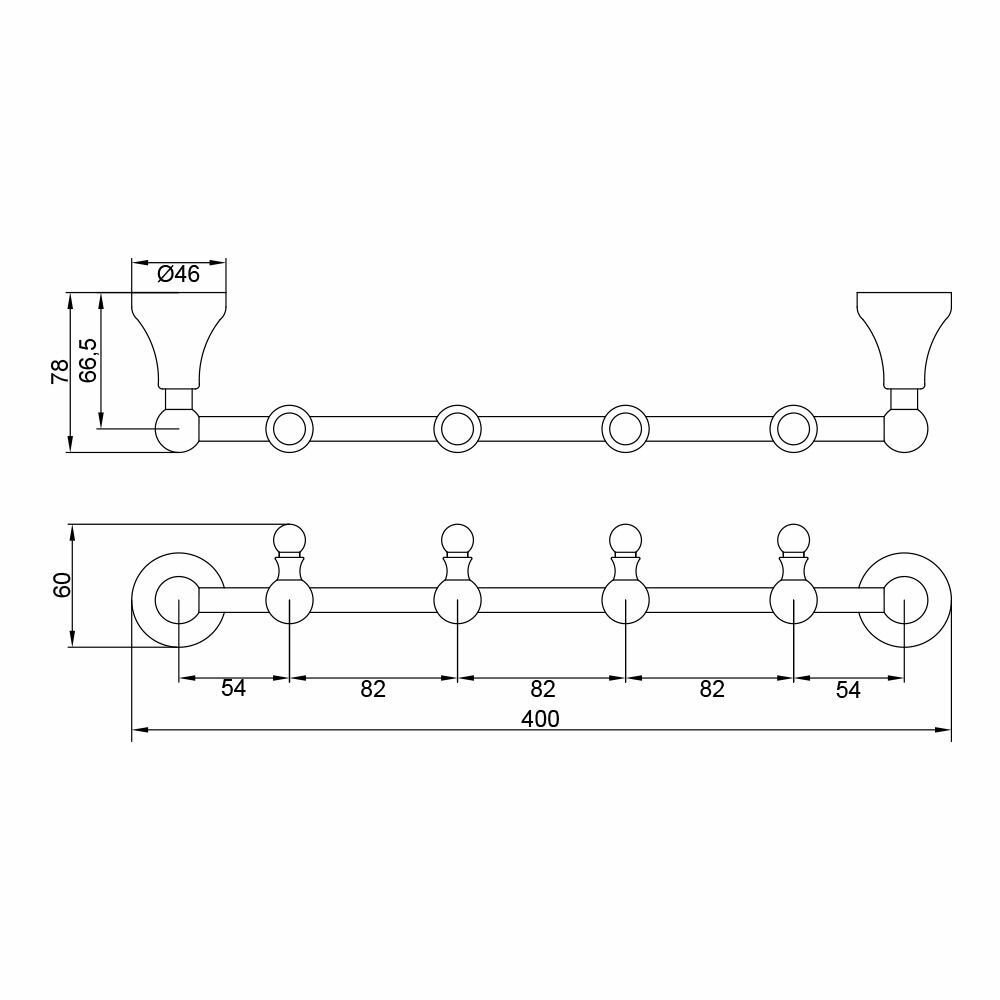 Планка с 5-ю крючками L40 см., бронза GIALETTA