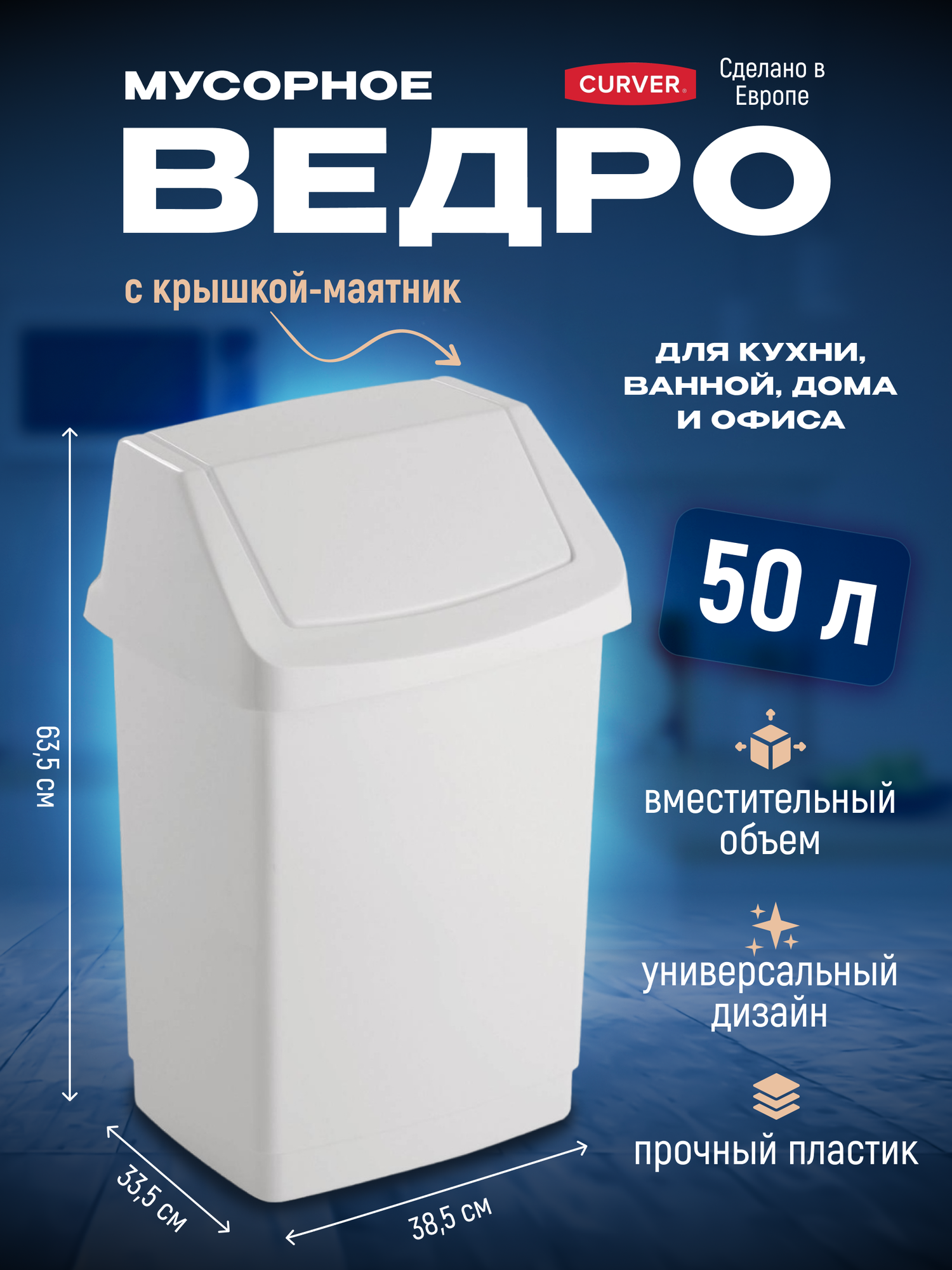 Мусорное ведро с крышкой маятник для кухни и дома, прочное и удобное, Curver CLICK IT 50 литров