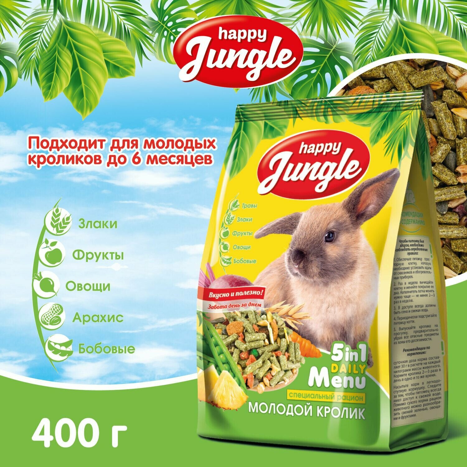 Купить Сухой корм для молодых кроликов до 6 месяцев Happy Jungle 5in1 для грызунов daily menu фрукты 400 г