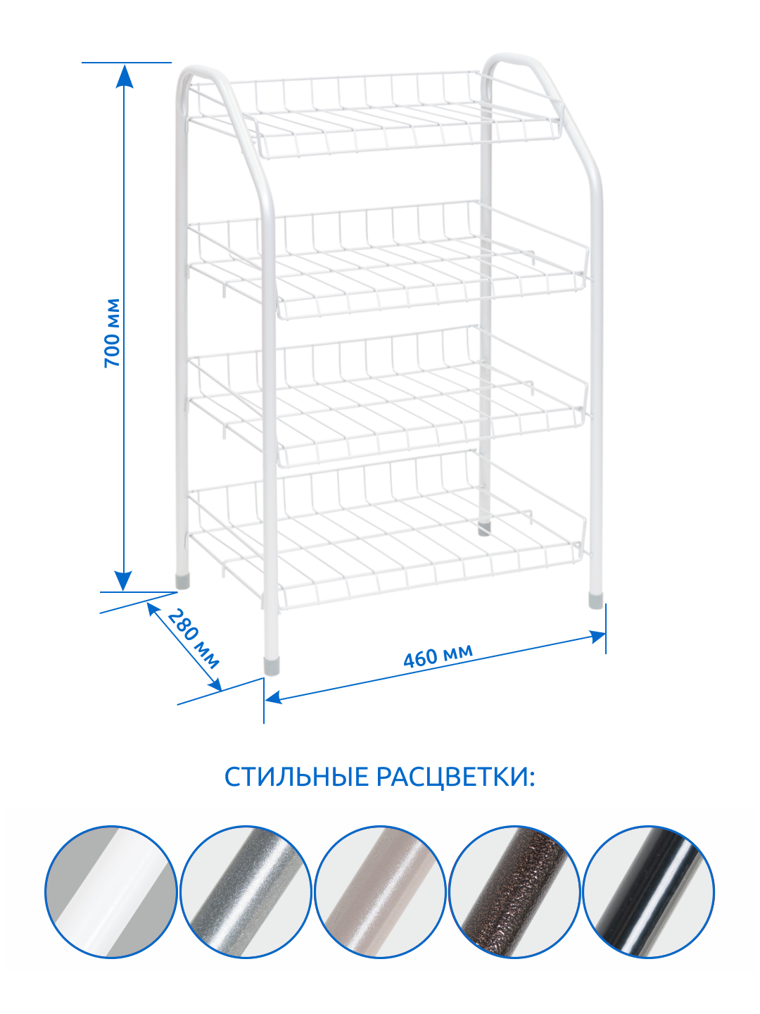 Этажерка д/обуви Nika ЭТ2/МБ 46х28х70см 4 полки сталь, белый
