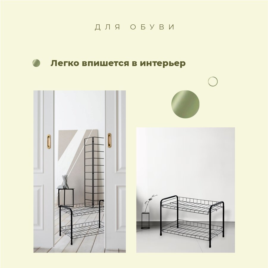 Полка для обуви, металл, 2 секции, 66х28х44 см, черная, Nika, ЭТ3/Ч