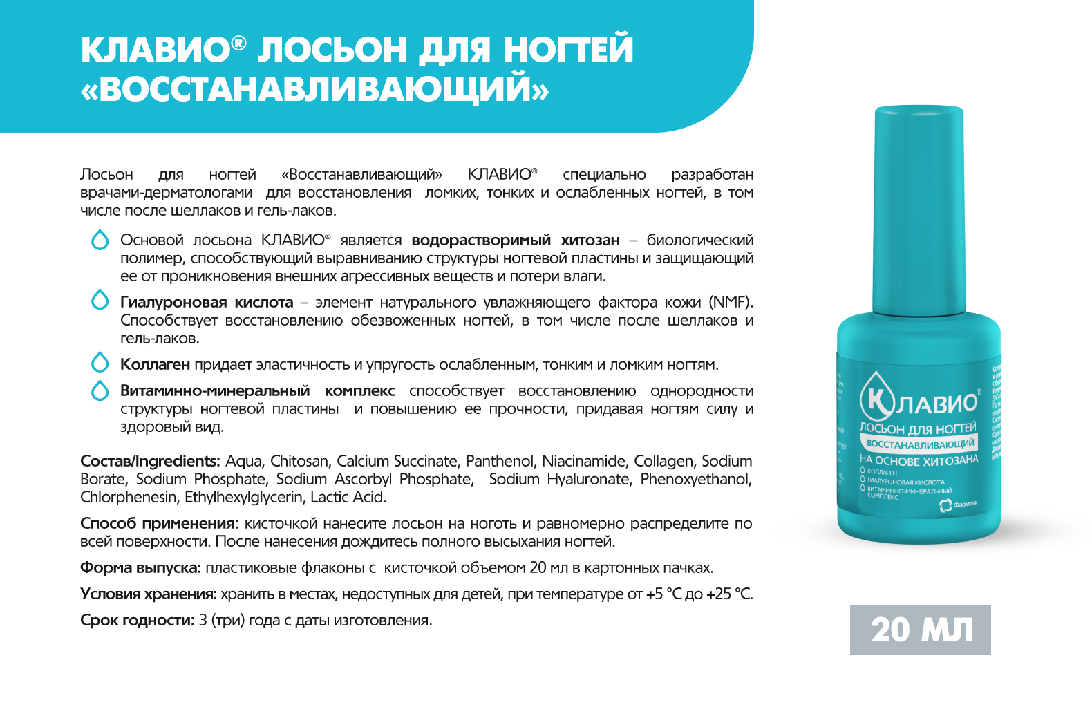 Клавио Лосьон д/ногтей восстанавливающий на основе хитозана 20мл