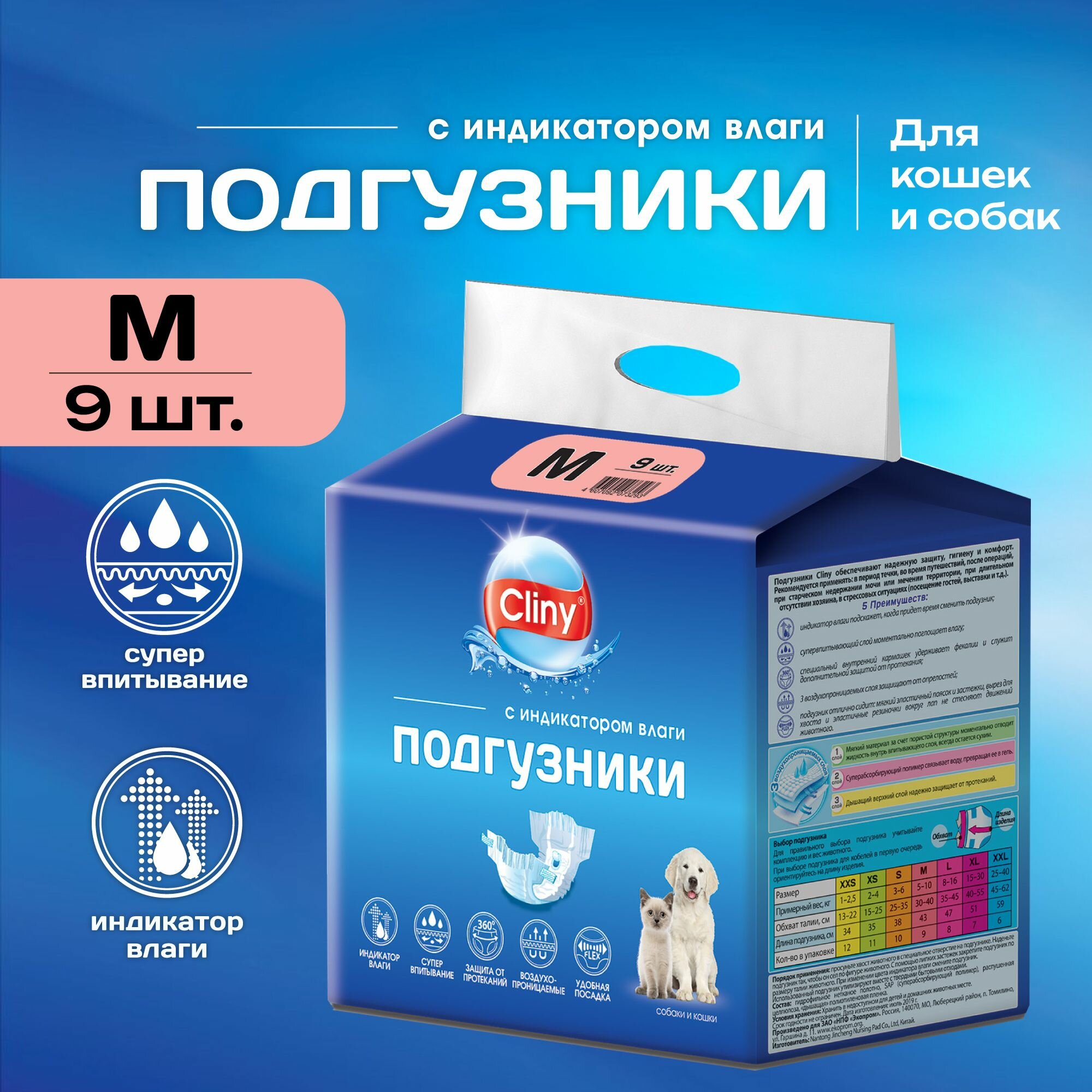 CLINY Подгузники М ( 5-10кг) для собак и кошек, 9шт./уп.
