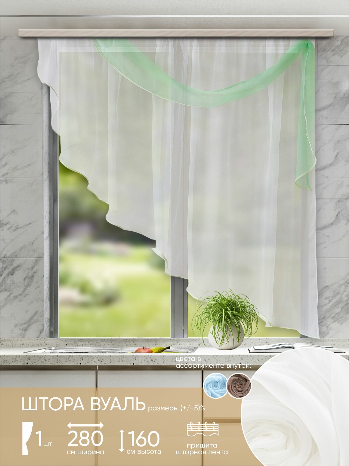 Тюль для комнаты Witerra штора вуаль 280*160 цветная