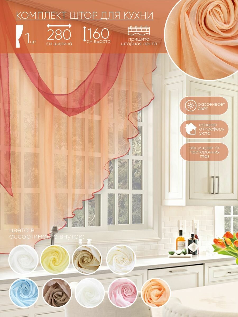 Комплект штор Witerra для кухни Весна 280*160 персик лев. -1шт