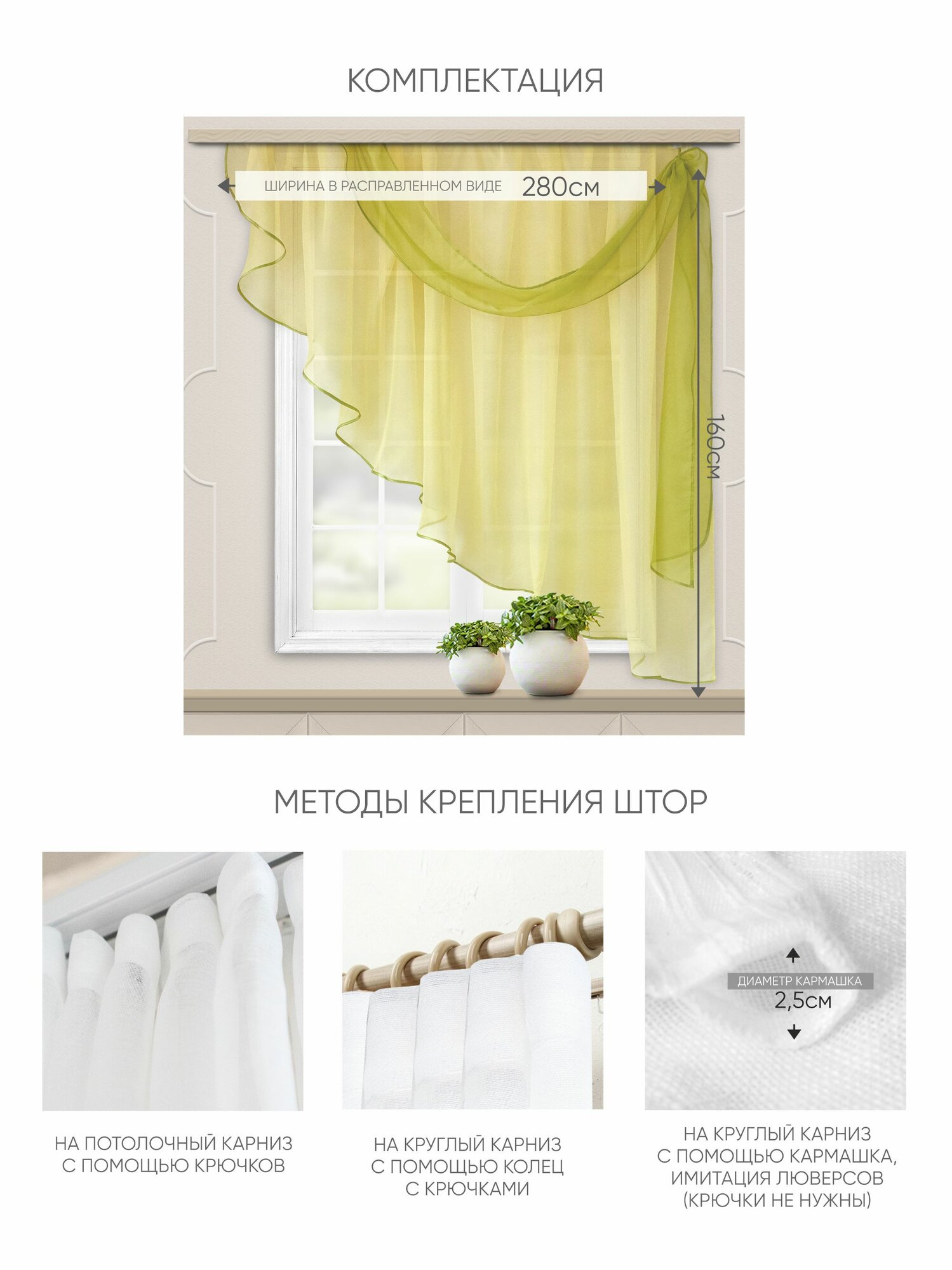 Комплект штор Witerra для кухни Весна 280*160 св.желтый прав. -1шт