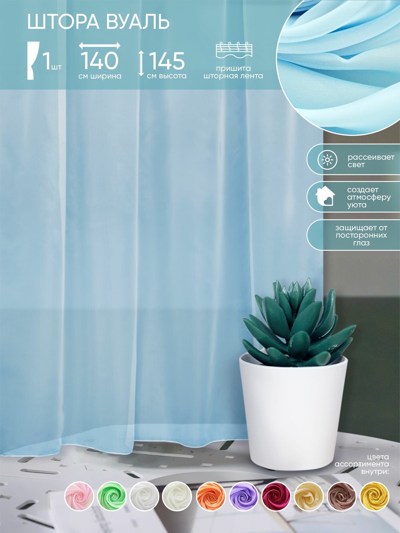 | Плюсы: | Яркая, сочная тюль |