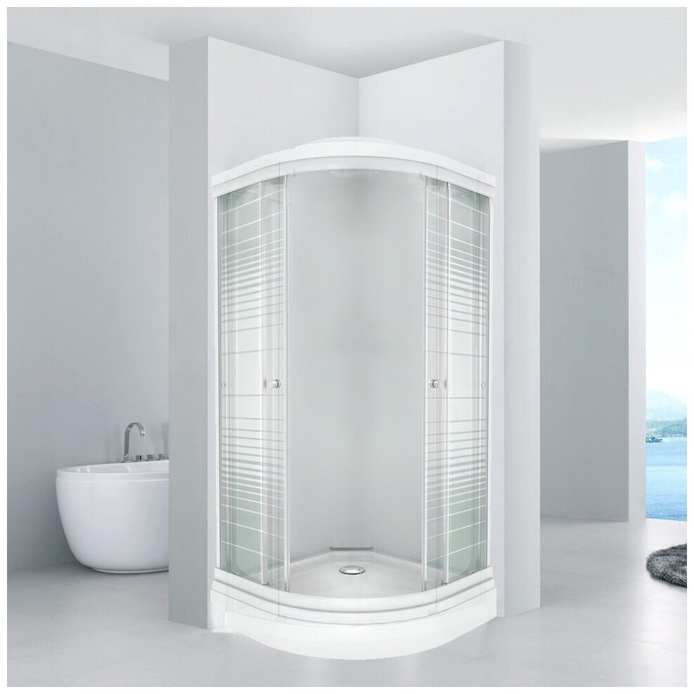 Душевой уголок Тритон Полосы Щ0000025929 с рисунком стёкла, профиль белый