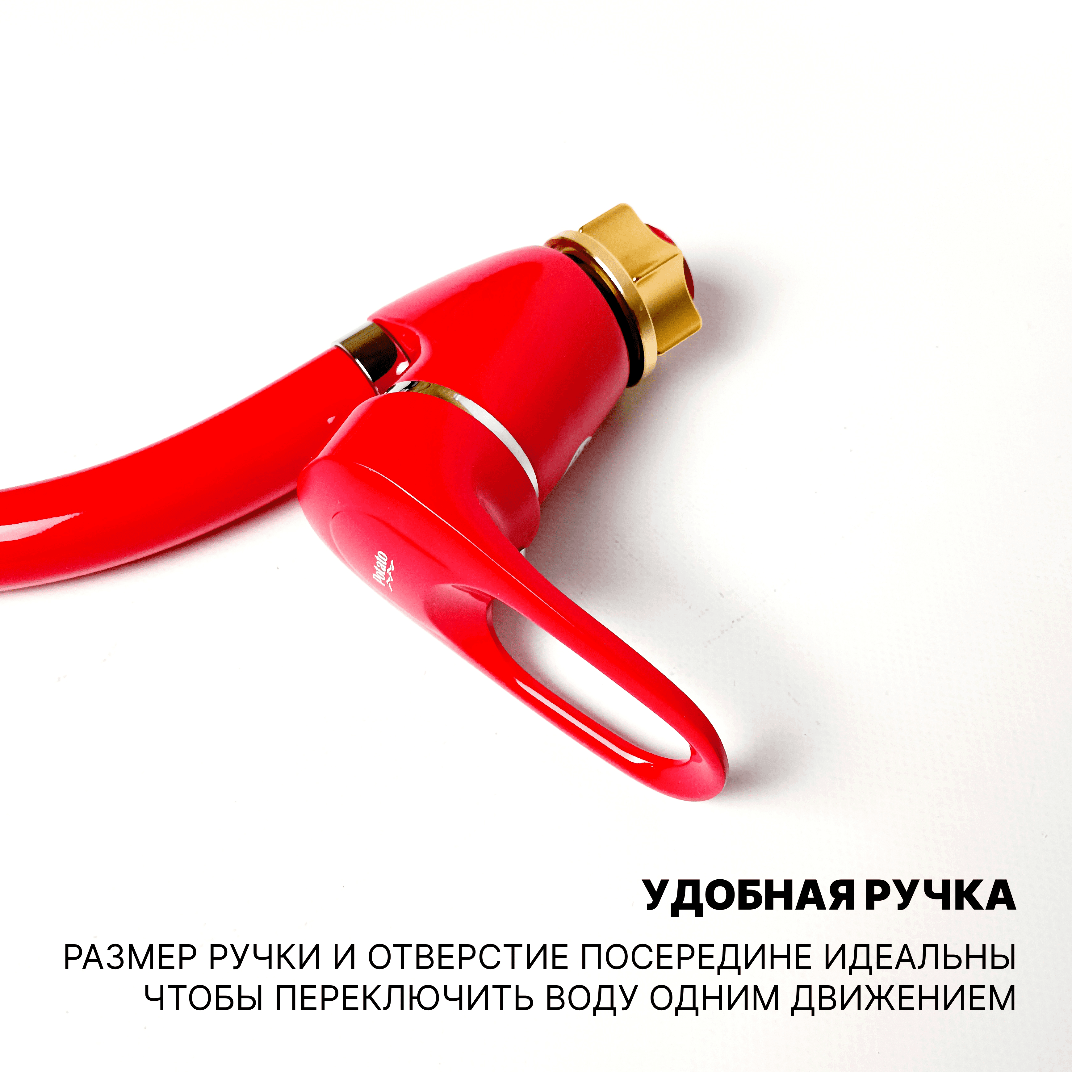 Смеситель однорычажный на кухню и раковину Potato P5925-5, красный