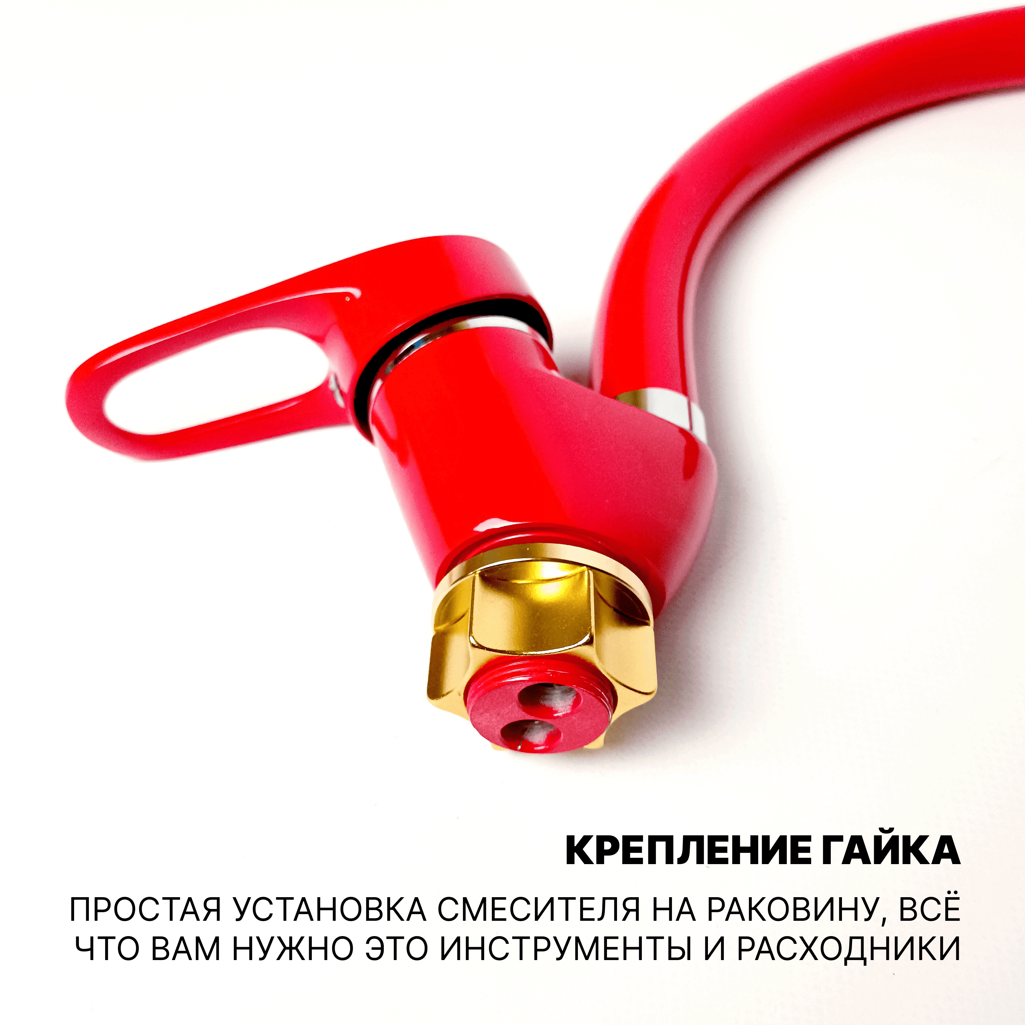 P5925-5 Смеситель для кухни с высоким изливом (крепление гайка), Красный